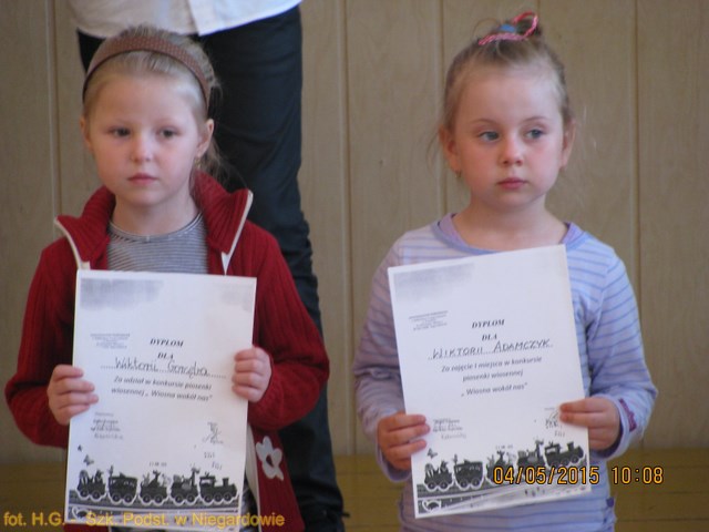 Ucz. kl. 0 nagrodzone w konkursie piosenki pt. "Wiosna wokół nas".
