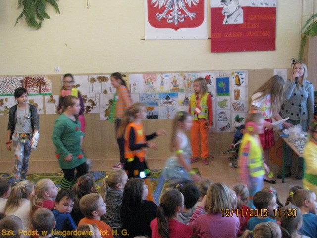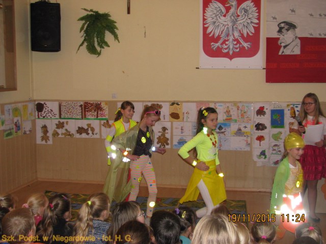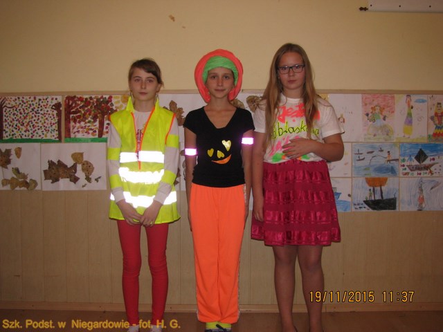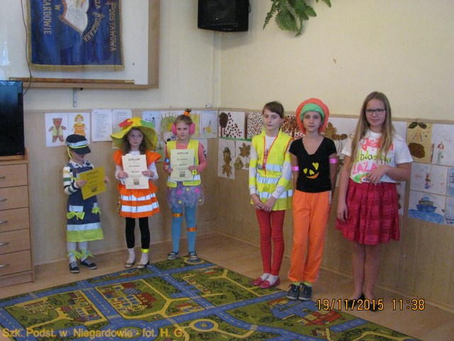 Szkolny konkurs ODBLASKOWA MODA. Organizacją konkursu zajmowała się Pani M. Łukasiewicz (naucz. wychowania fizycznego). Do konkursu zgłosiło się liczne grono dzieci z wszystkich klas.
