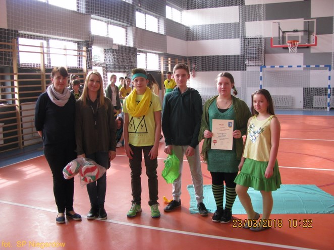 Uczestnicy Gminnego etapu Turnieju BRD zdobyli III miejsce. W nagrodę otrzymali drobne upominki indywidualnie oraz jako drużyna 3 piłki, które drużyna przekazała do użytku na lekcjach wychowania fizycznego.