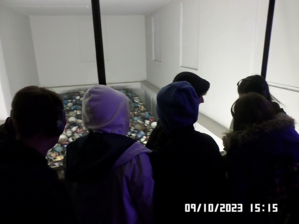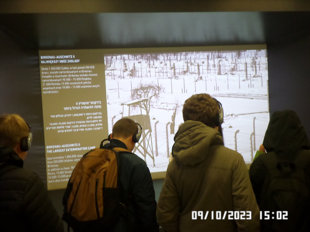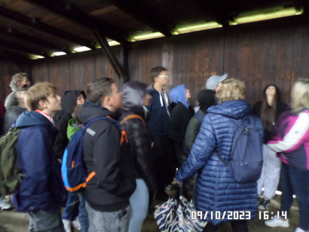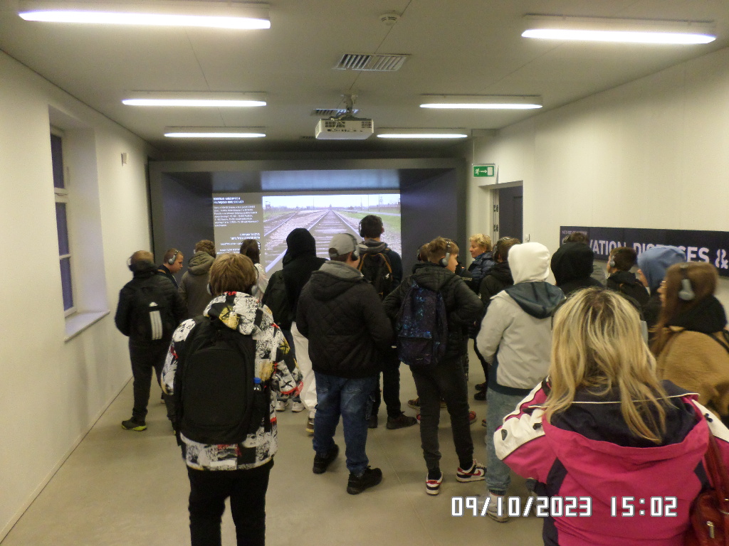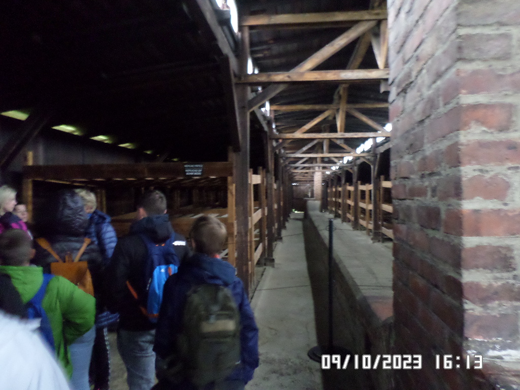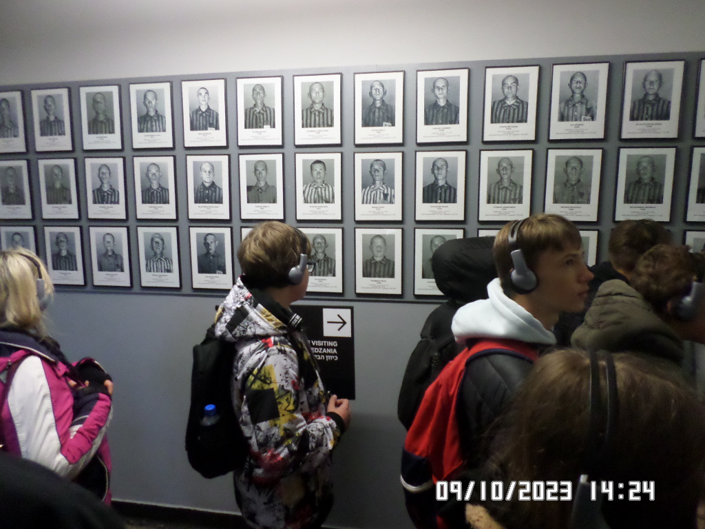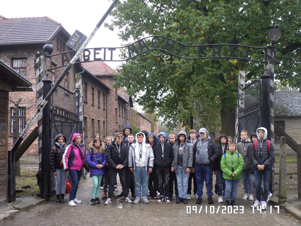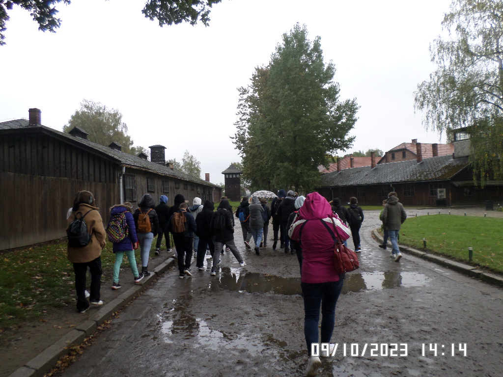 Dalsza część wycieczki to zwiedzanie niektórych miejsc i wystaw na terenie obozu koncentracyjnego Auschwitz Birkenau oraz na terenie obozu w Brzezince. To była trudna i ważna lekcja historii dla uczniów... W ciszy i zadumie słuchali oni informacji przekazywanych przez przewodnika. Te informacje oraz oglądane miejsca, przedmioty i obrazy z obozowego życia więźniów wzbudziły u uczniów wiele emocji, wiele głebokich refleksji, przemyśleń i wiele pytań ... Uczniowie zatrzymali się na chwilę przed ścianą śmierci, gdzie zapalili znicz.