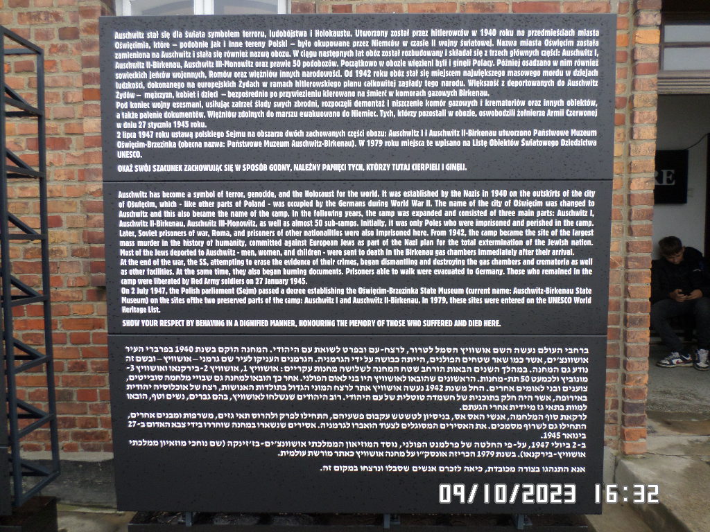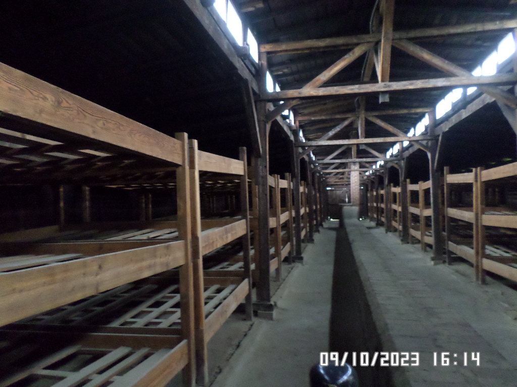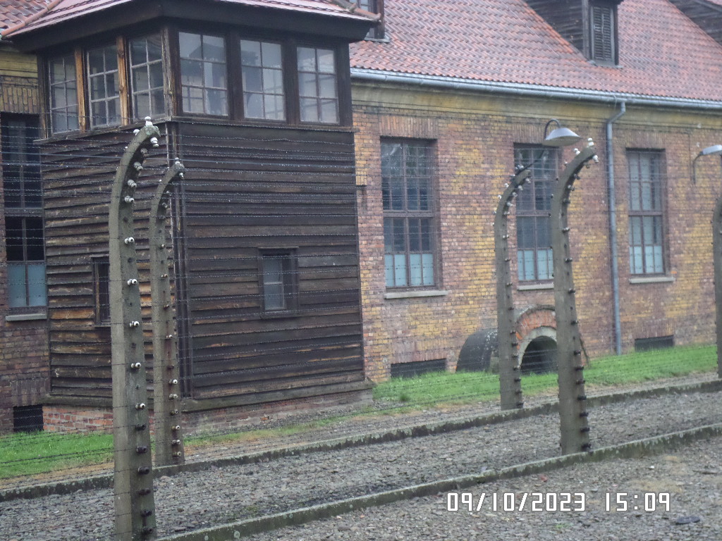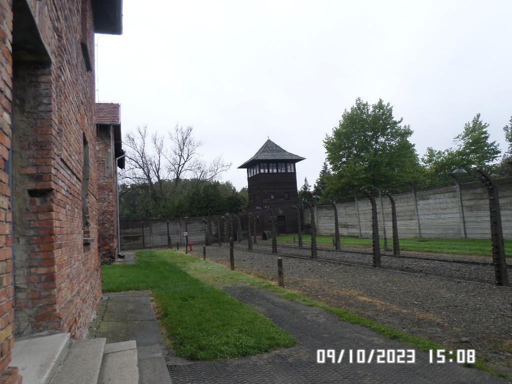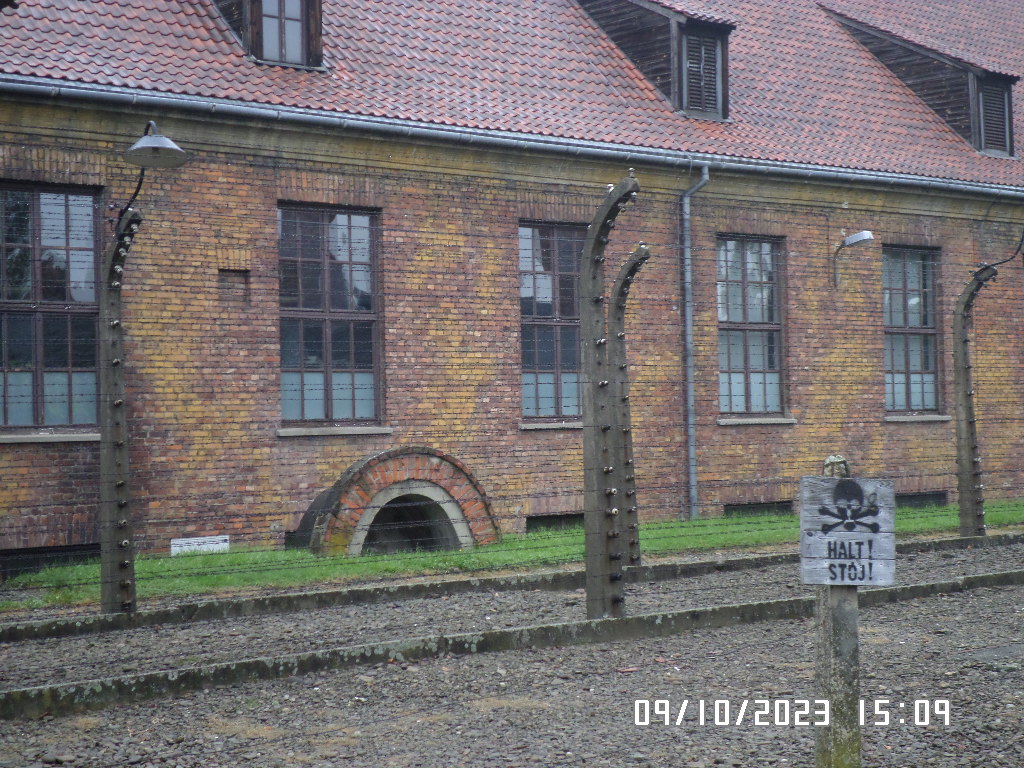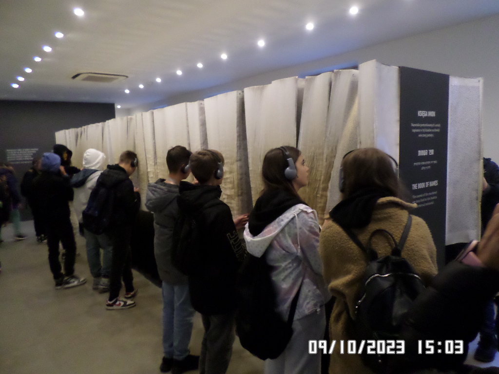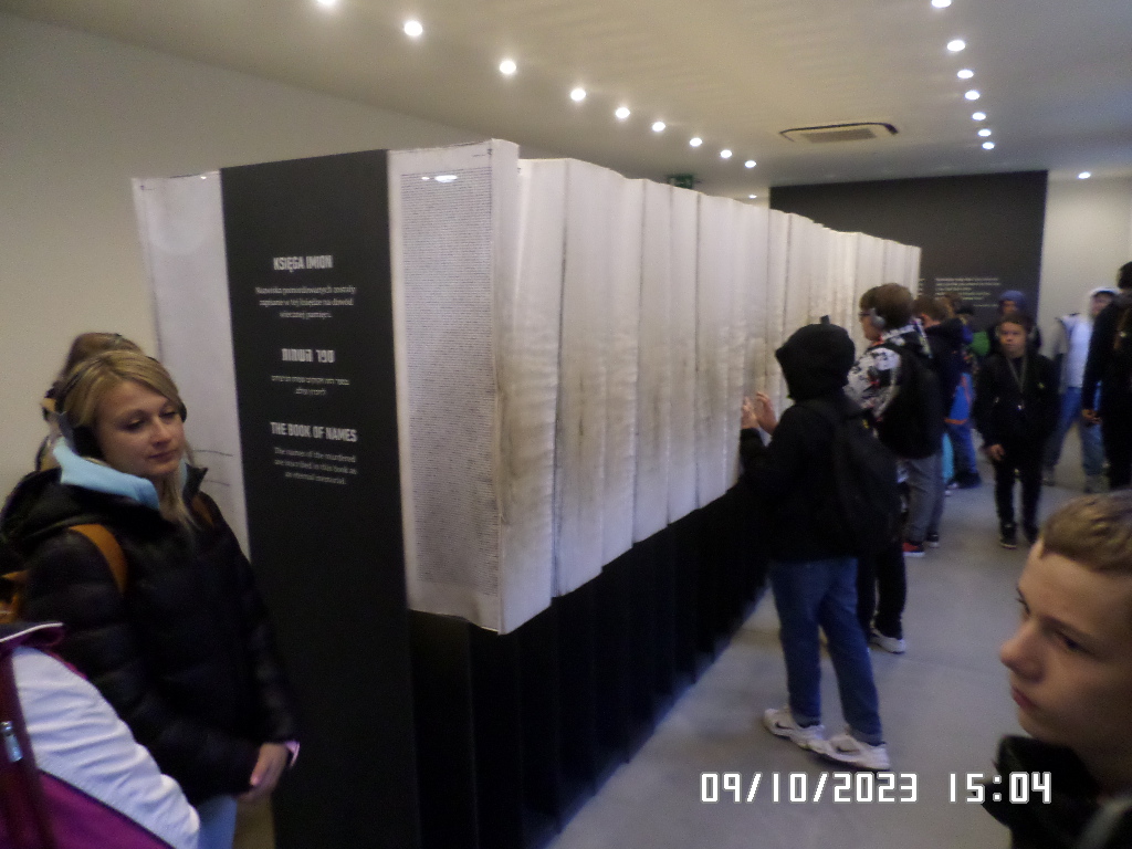 Dalsza część wycieczki to zwiedzanie niektórych miejsc i wystaw na terenie obozu koncentracyjnego Auschwitz Birkenau oraz na terenie obozu w Brzezince. To była trudna i ważna lekcja historii dla uczniów... W ciszy i zadumie słuchali oni informacji przekazywanych przez przewodnika. Te informacje oraz oglądane miejsca, przedmioty i obrazy z obozowego życia więźniów wzbudziły u uczniów wiele emocji, wiele głebokich refleksji, przemyśleń i wiele pytań ... Uczniowie zatrzymali się na chwilę przed ścianą śmierci, gdzie zapalili znicz.