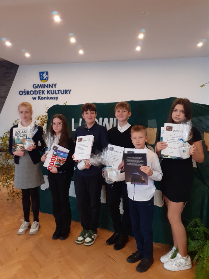 9 listopada 2023r. w GOK-u w Koniuszy odbył się gminny etap dorocznego Konkursu Recytatorskiego im. L.H. Morstina. Naszą szkołę reprezentowało 6 osób: Ola Szopa klasa 4, Filip Śmitkowski klasa 5, Lena Nowak i Kamil Łakomy klasa 6 oraz Julia Janczyk i Filip Cieślik klasa 7. Wszyscy uczestnicy wyrecytowali swoje teksty na wysokim poziomie. Do etapu powiatowego, który odbędzie się 17 listopada w Proszowicach zakwalifikowali się Lena Nowak i Filip Śmitkowski. Wszystkim uczestnikom gratulujemy i trzymamy kciuki za "powiat".